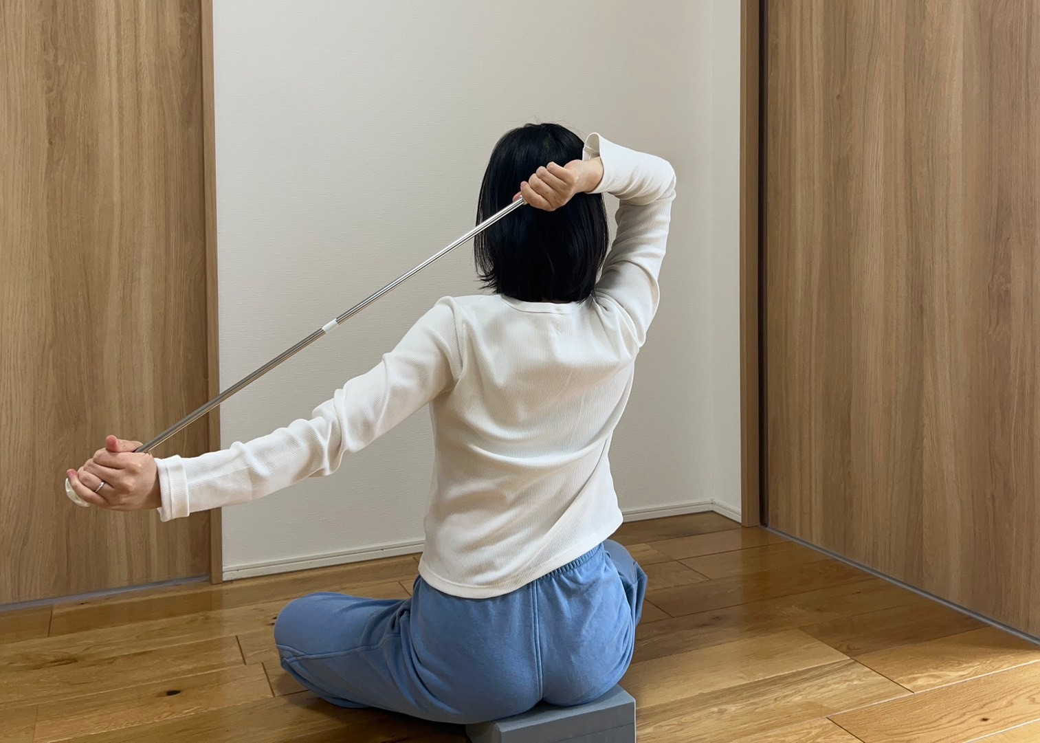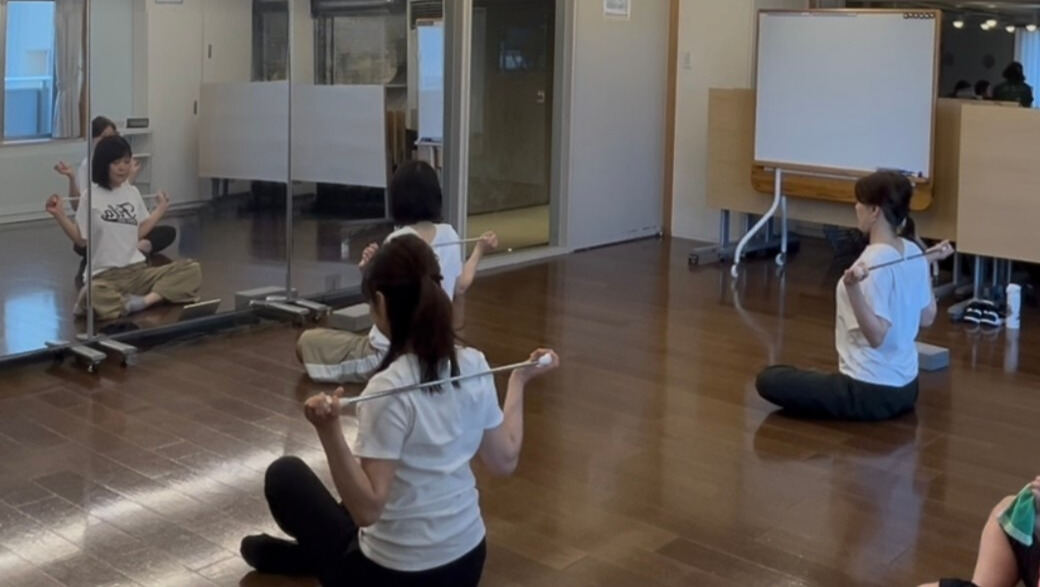 ヨガの知恵を活かし、バトンを「体を支える道具」として使うことで、