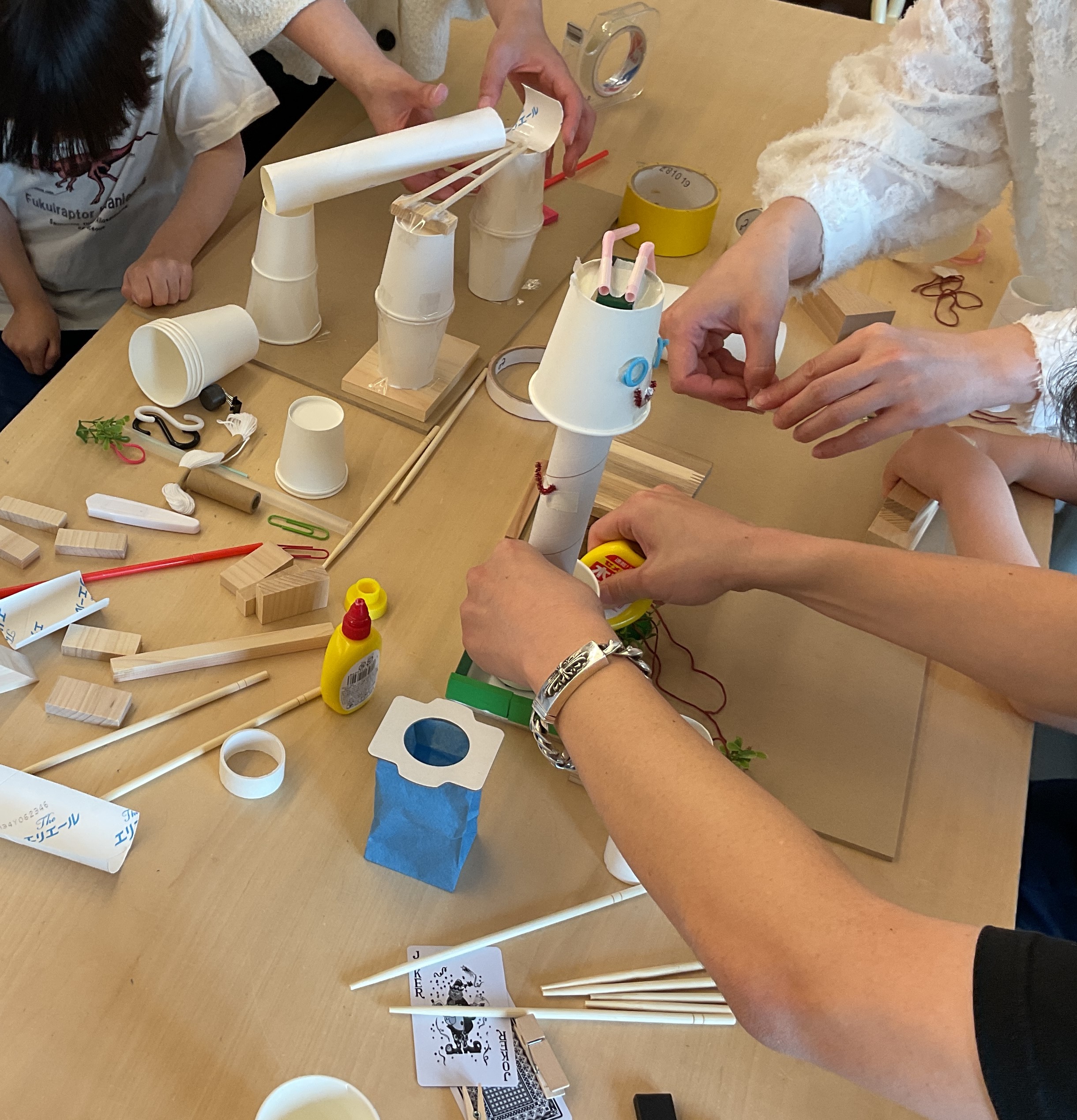 ピタゴラ・コロコロ装置を作って遊びながら、子供たちの感性を引き出し